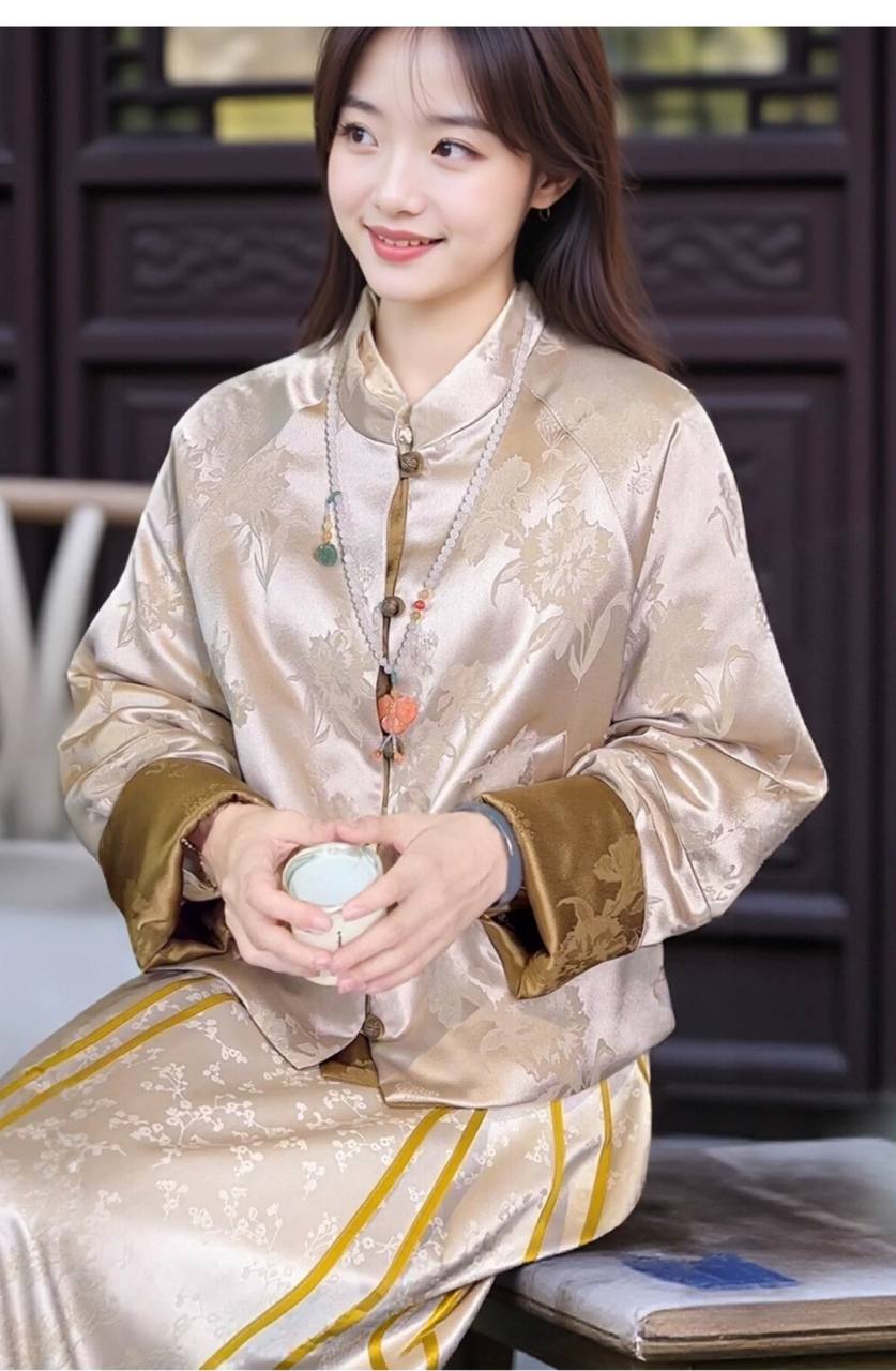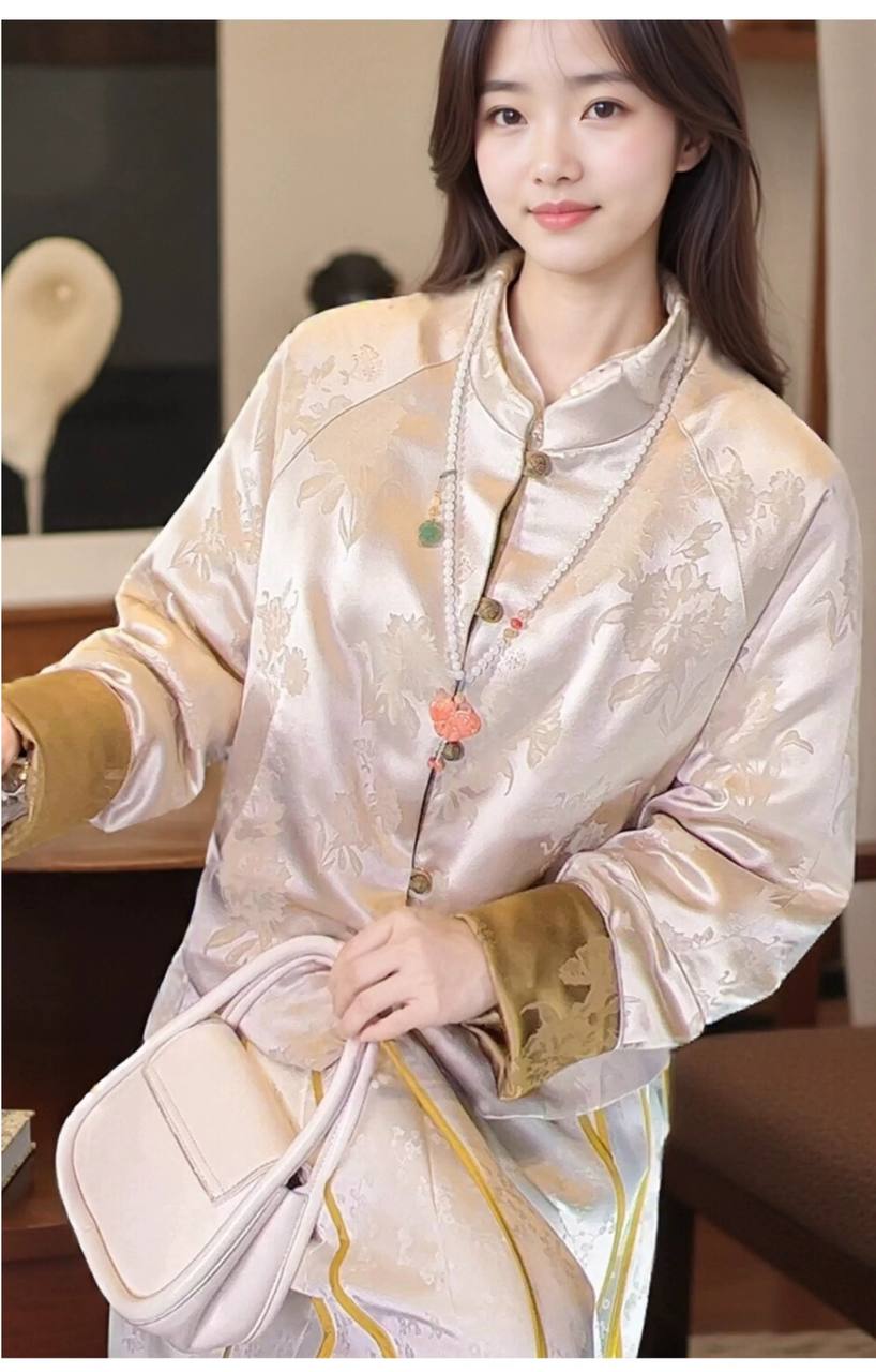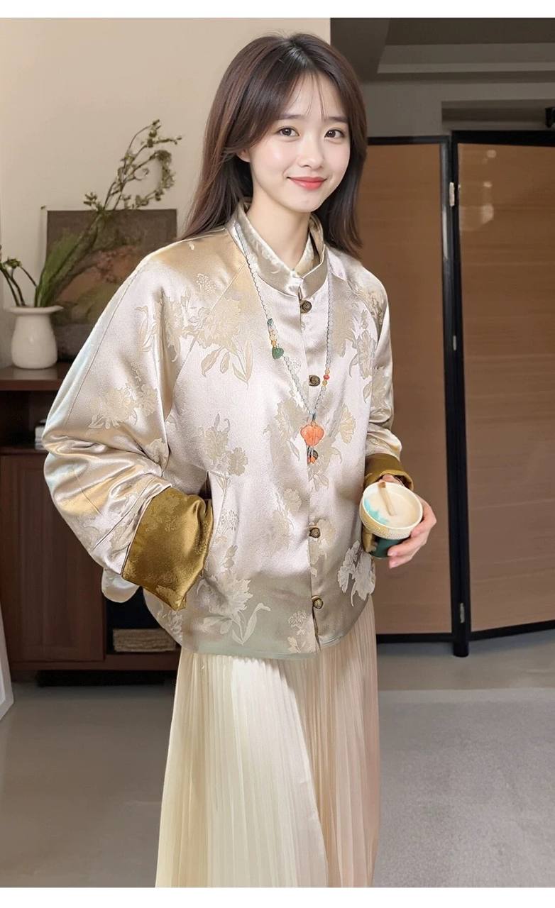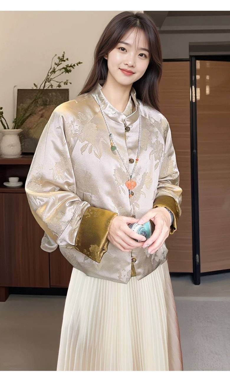 New fashion satin jacquard short style women's light coat