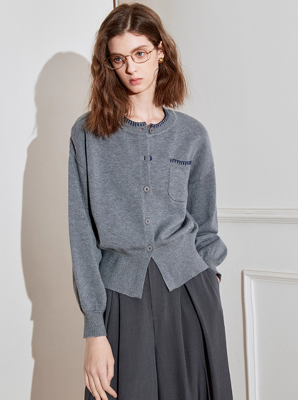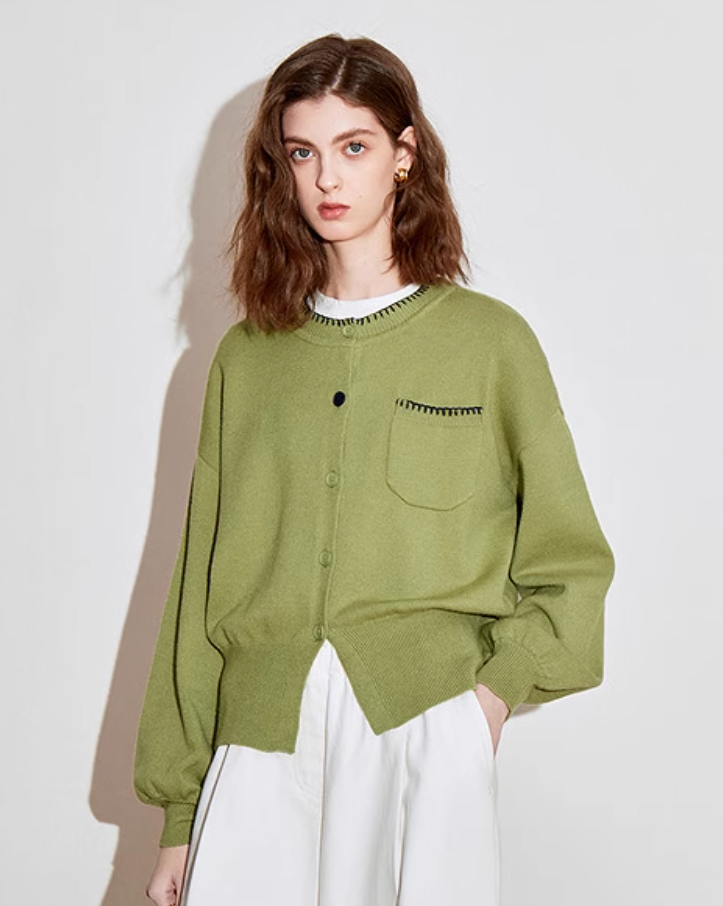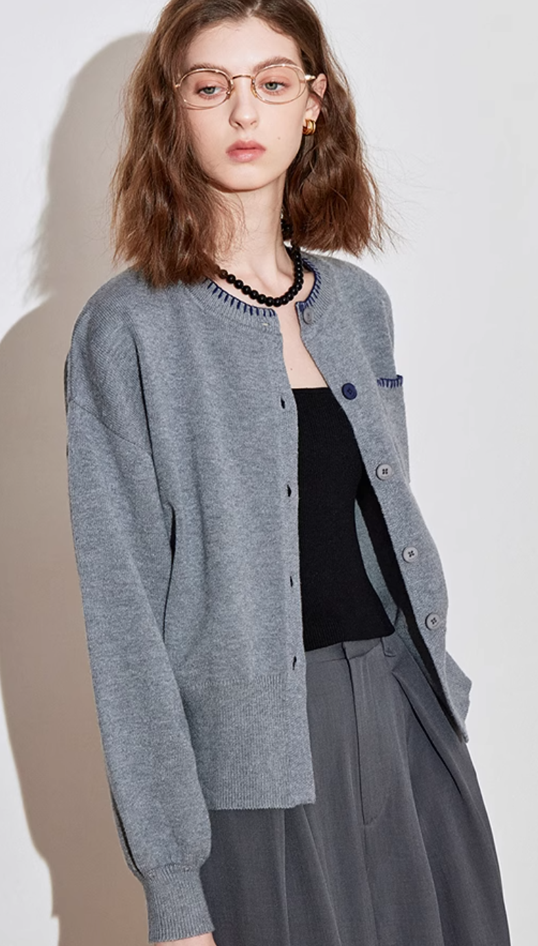 Autumn new minimalist woolen top, waist cinching jacket, cardigan