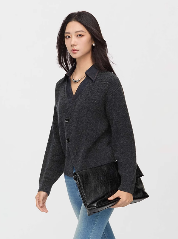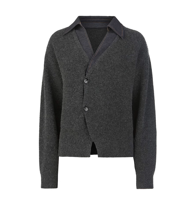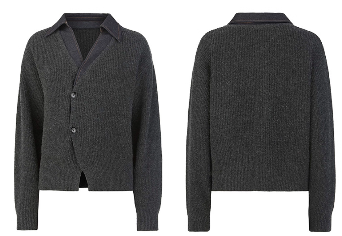 Autumn casual lapel contrasting color spliced cardigan knit sweater