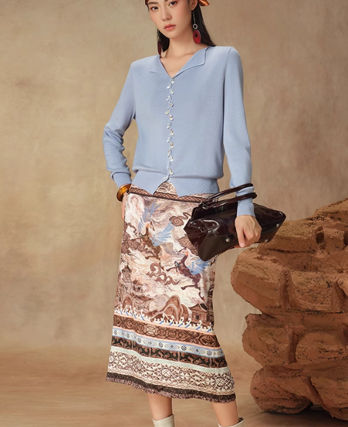 Modern Chinese style early autumn outfit cardigan, outerwear, knitted sweat
