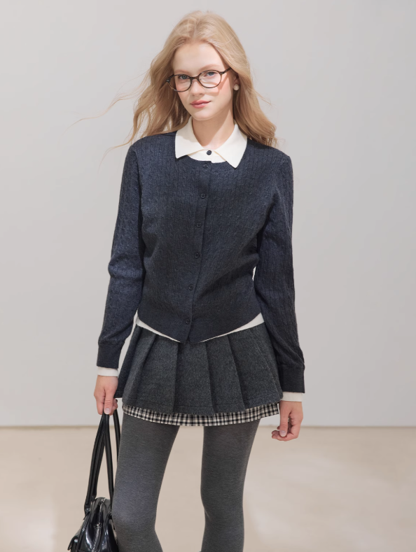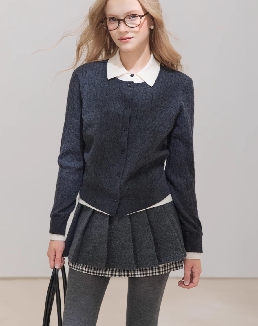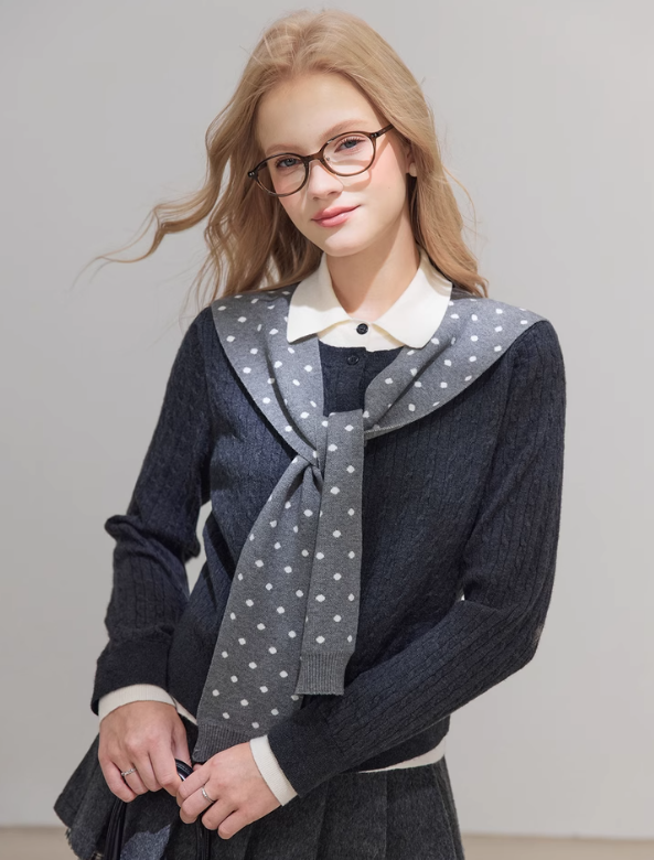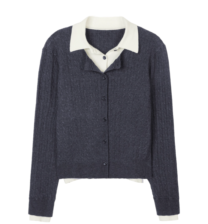 Two polo collar long sleeved knitted cardigans for women's autumn fashion fashio