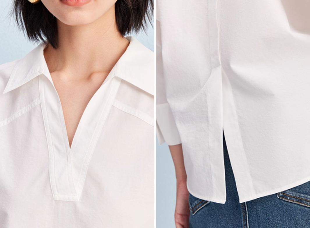 Autumn new cotton V-neck solid color seven quarter sleeve top for commuting
