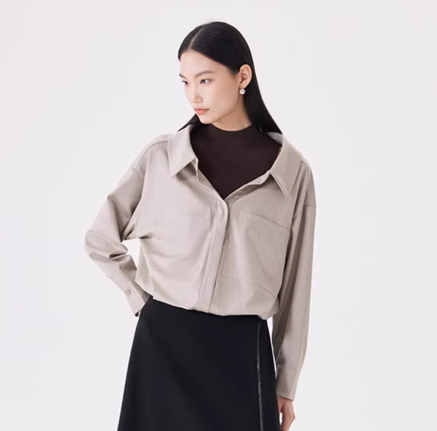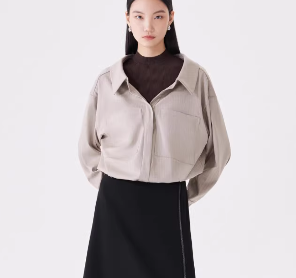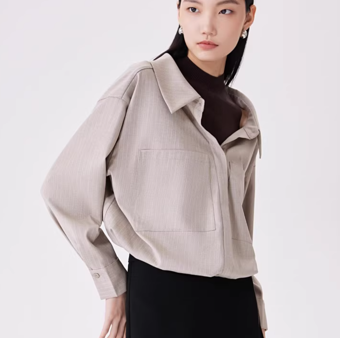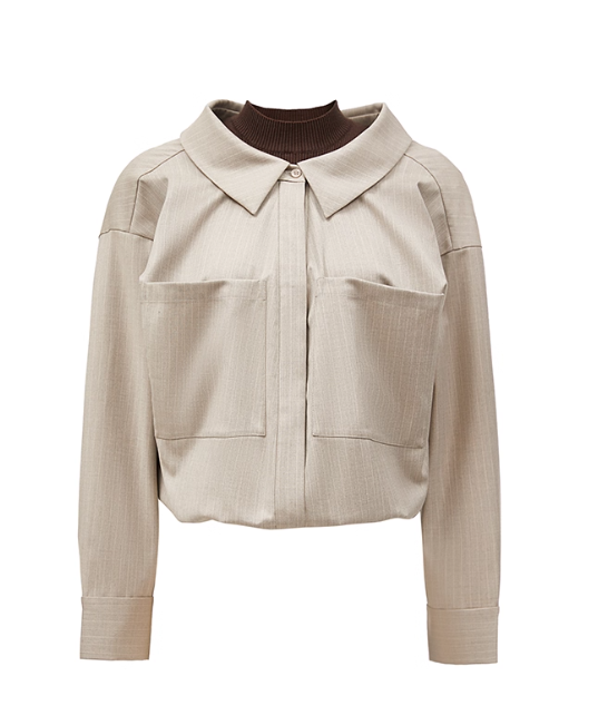 New shirt with seven quarter sleeve patchwork knit sweater, fake two pieces