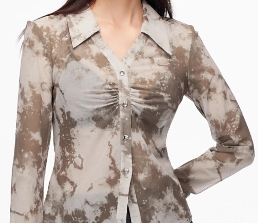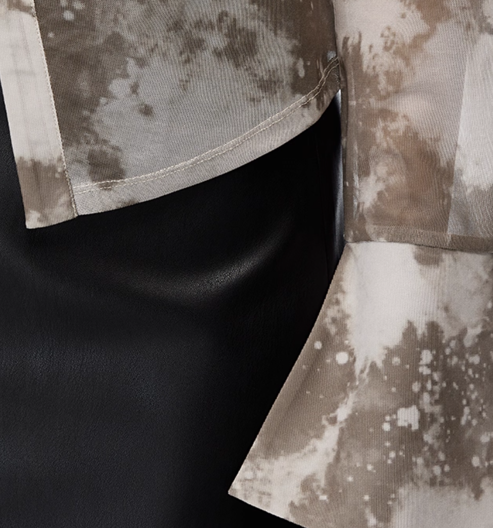 New autumn style pleated waist print trumpet sleeves trendy high street chiffon