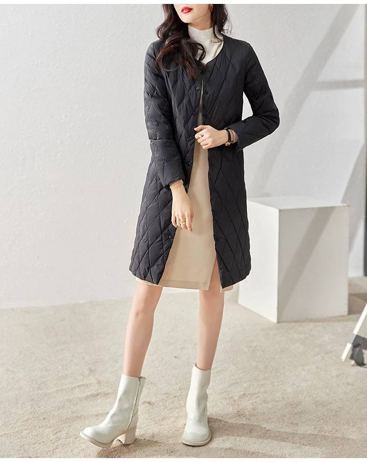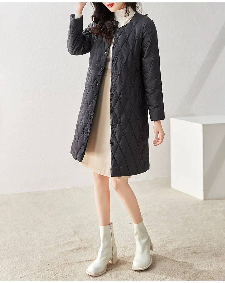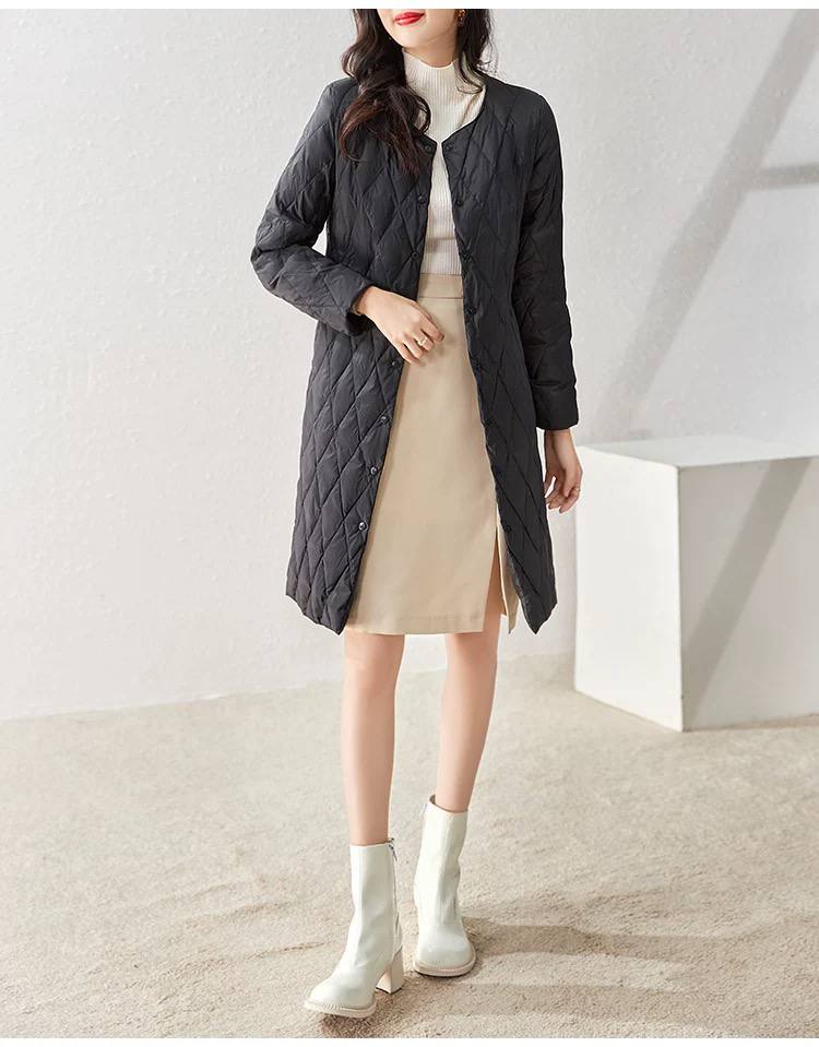 Lightweight and fashionable mid-length women's down jacket